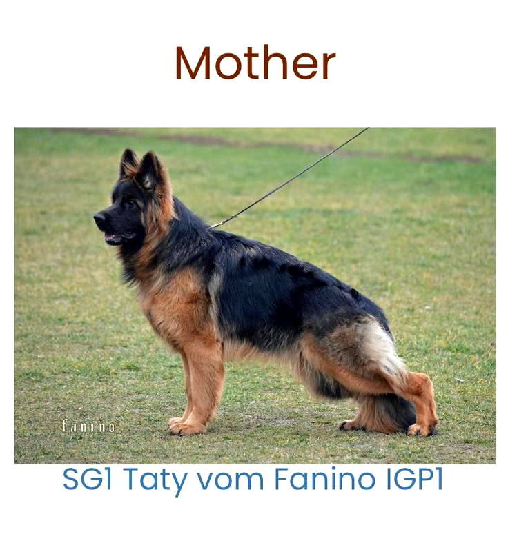SHE HAS A VERY SWEET PERSONALITY AND VERY SOCIAL. SHE HAS VERY GOOD WORKING DRIVE. SHE HAS GREAT LINES! SOME OF HER LINES INCLUDE: SG GERRY VOM WAISAGRUND IPO3 WUSV-WM, V (LGZS) PIKE DEL LUPO NERO SCHH3 (SG-BSP) IPO3, JEFF VOM WEIBERITZTAL IPO3, BSP, V MIC VON DER KINE VPG3, SCHH3, SG TYSON VON DER ADELEGG IPO3 (LG-FCI), WUSV CHAMP 2XWUSV, 2XBSP, SCHH3, IPO3, FH2 QUASY VON DER BOSEN NACHBARSCHAFT, SG IPO3 NORMAN EQUIDIUS. THESE ARE JUST A FEW!